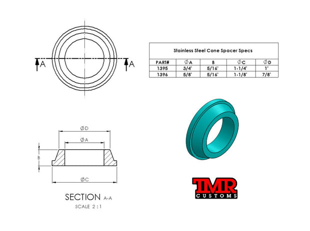 TMR Stainless Steel Cone Spacers are a must-have for any fabricator working with heim joints or rod ends. These precision-machined spacers act as shims, washers, and misalignment aids—all in one sleek, stainless package.