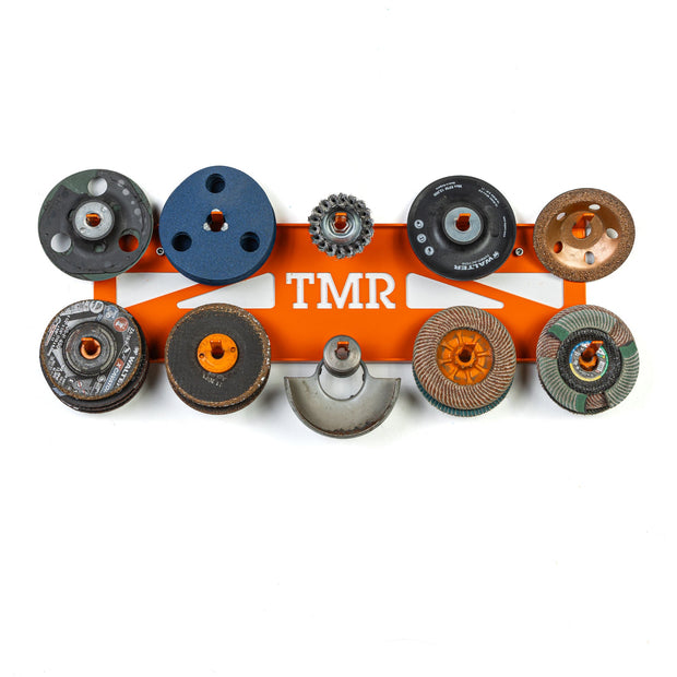 TMR's grinding disc organizer provides proper storage for a large assortment of abrasive wheels! Get your grinding wheels up off your welding table where they'll stay clean and ready for use. TMR makes the ultimate grinding wheel holder and storage system!